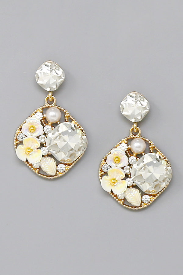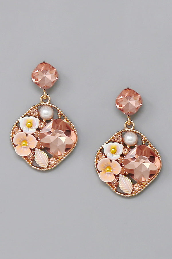 Floral Glass Stone Dangle Earrings