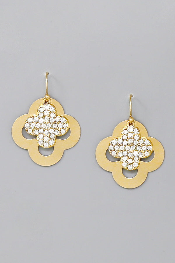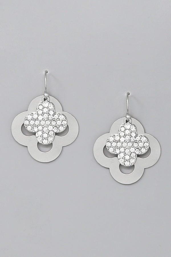 Glass Stone Embellished Clover Dangle Earrings