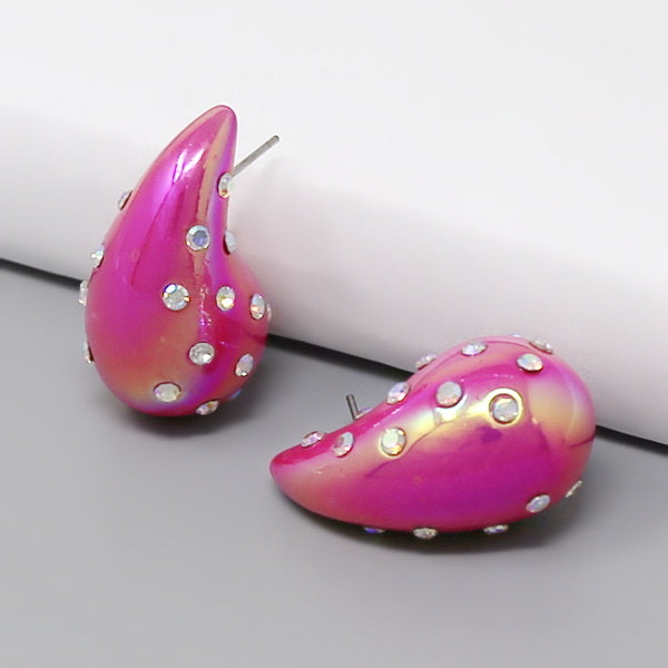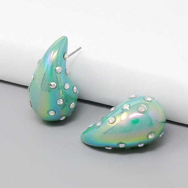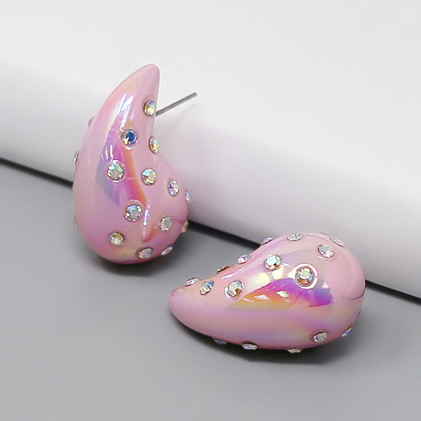 Glass Stone Embellished Pearl Finish Teardrop Earrings