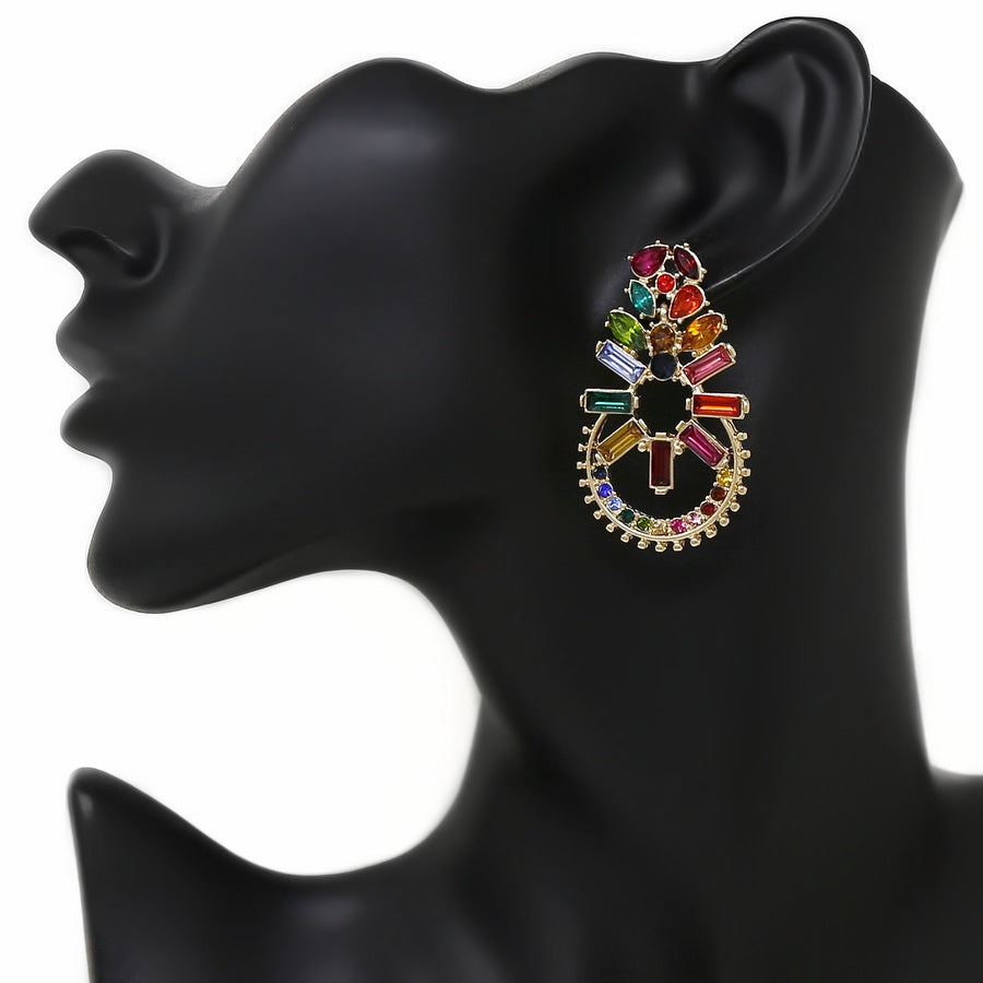 Glass Stone Embellished Statement Earrings