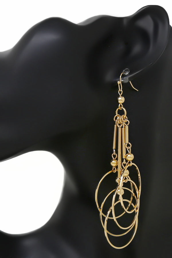 Multi Hoop Metal Bar Dangle Earrings