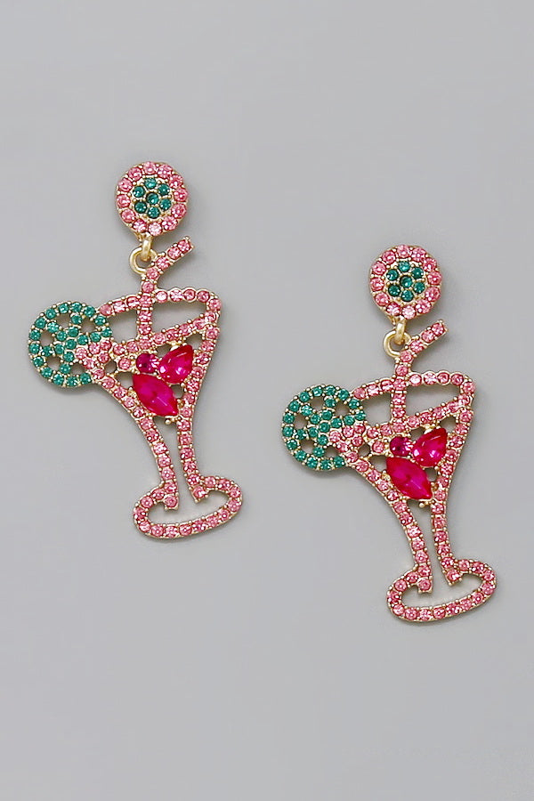 Pave Cocktail Glass Drop Earrings