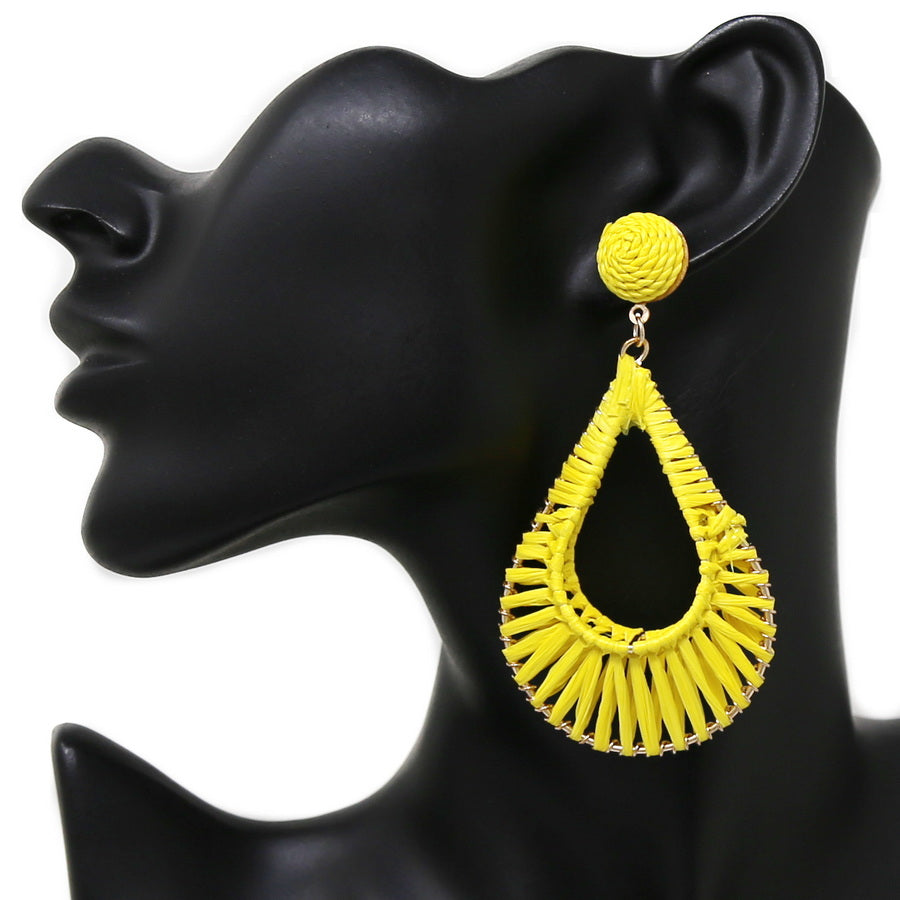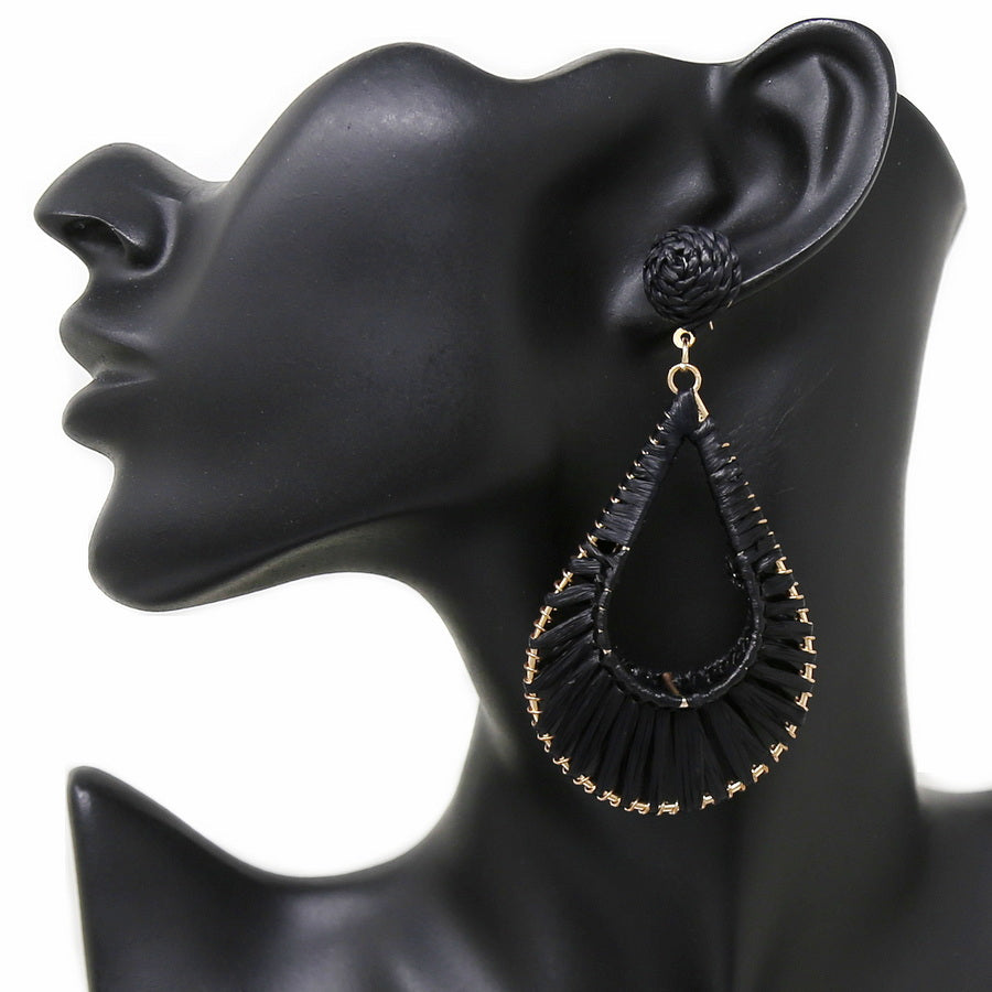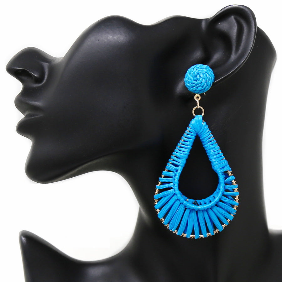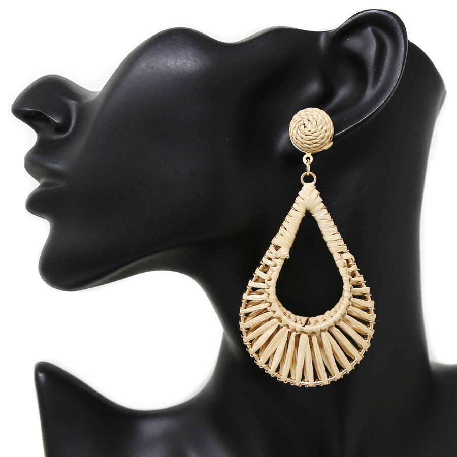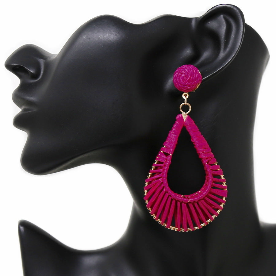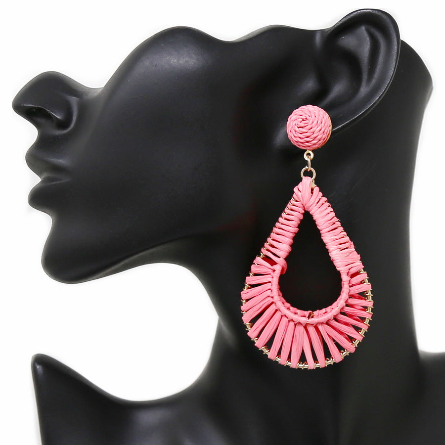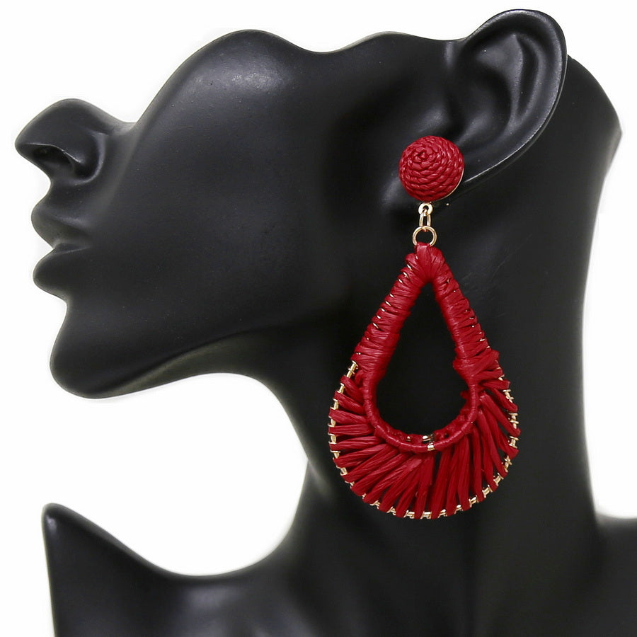 Raffia Wrapped Teardrop Hoop Dangle Earrings