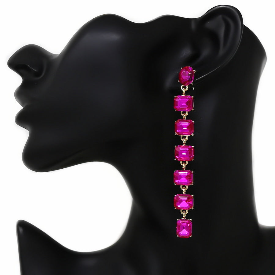 Rectangle Glass Stone Statement Earrings