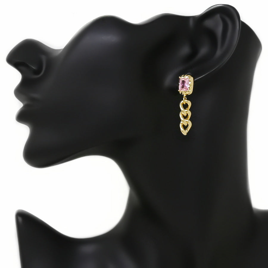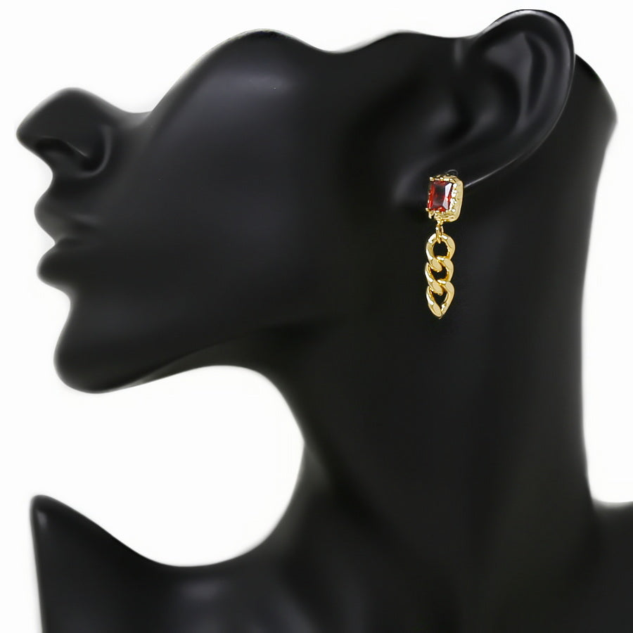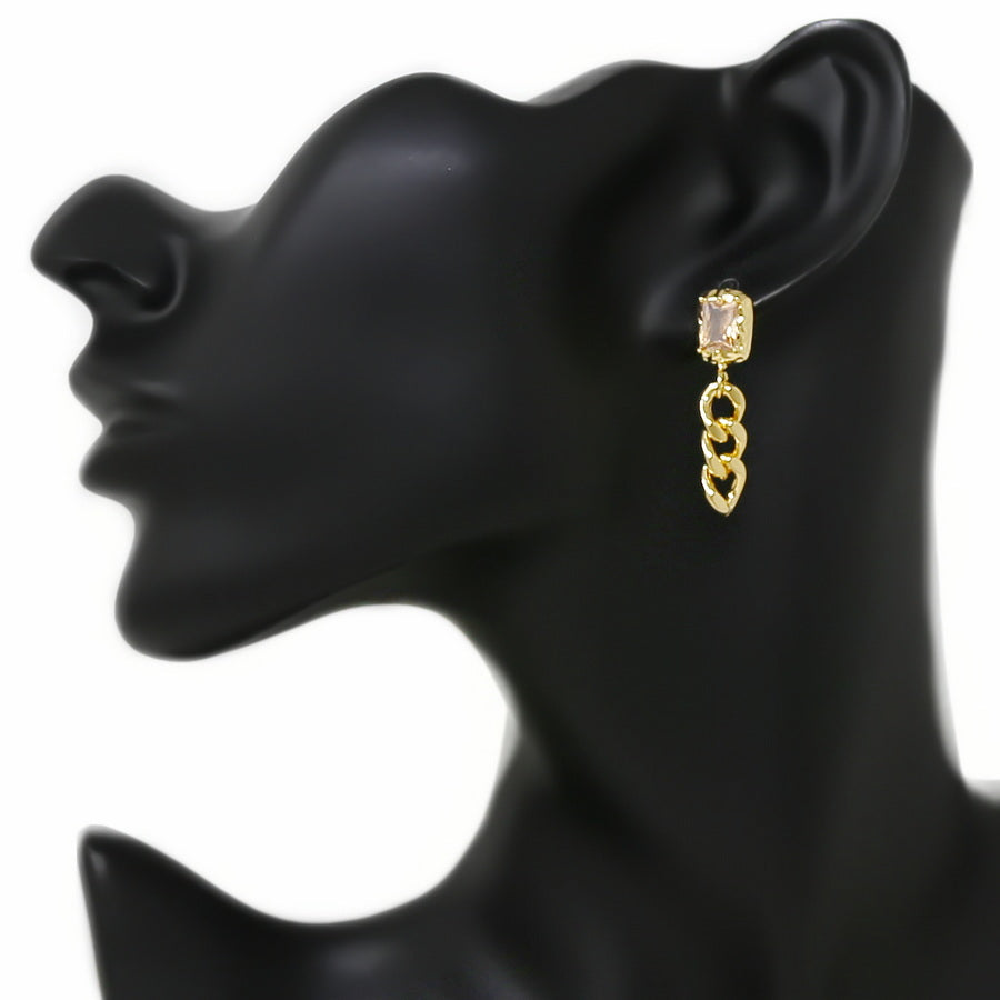 Rectangle Glass Stone With Chain Drop Earrings