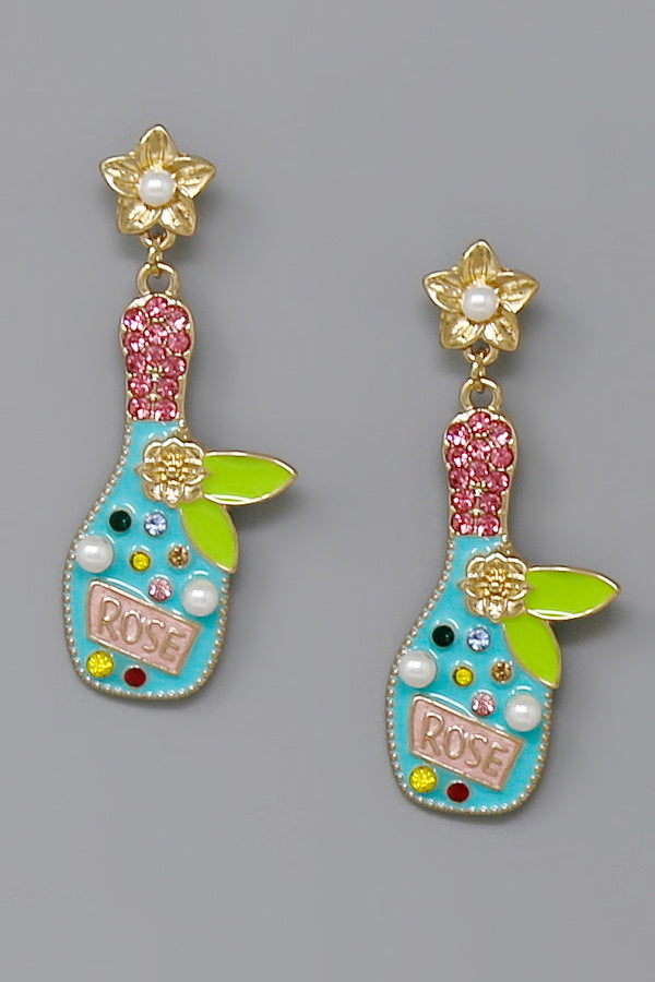 Rose Bottle Enamel Drop Earrings