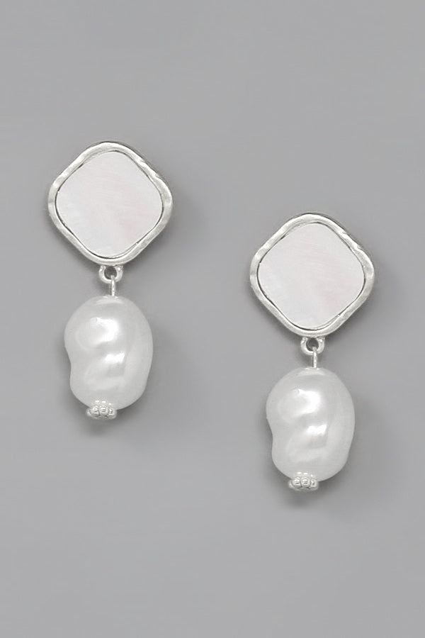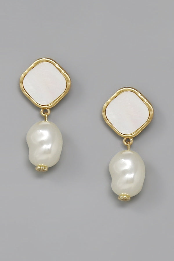 Shell Rhombus With Pearl Dangle Earrings