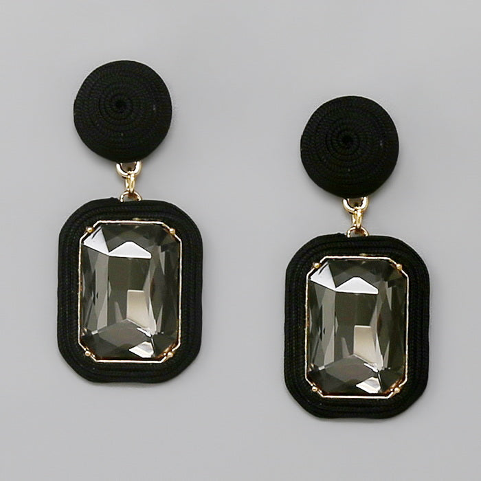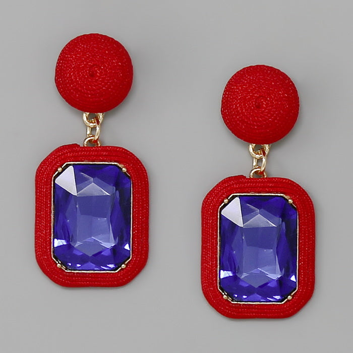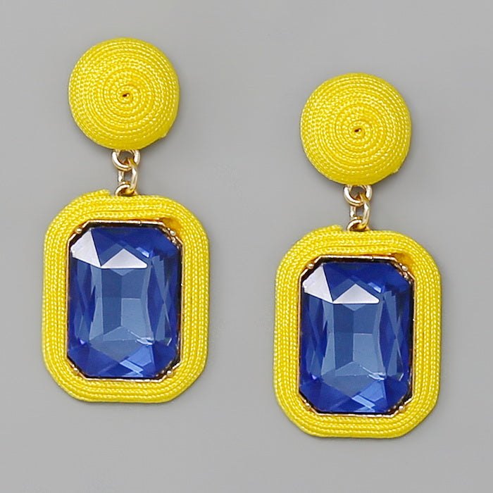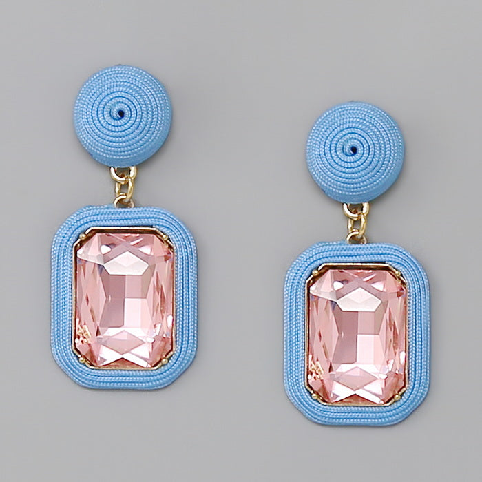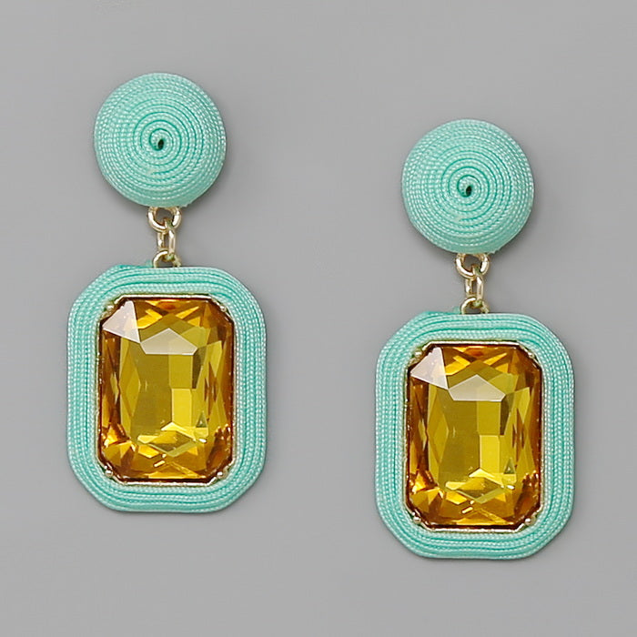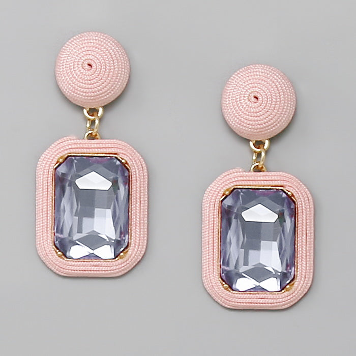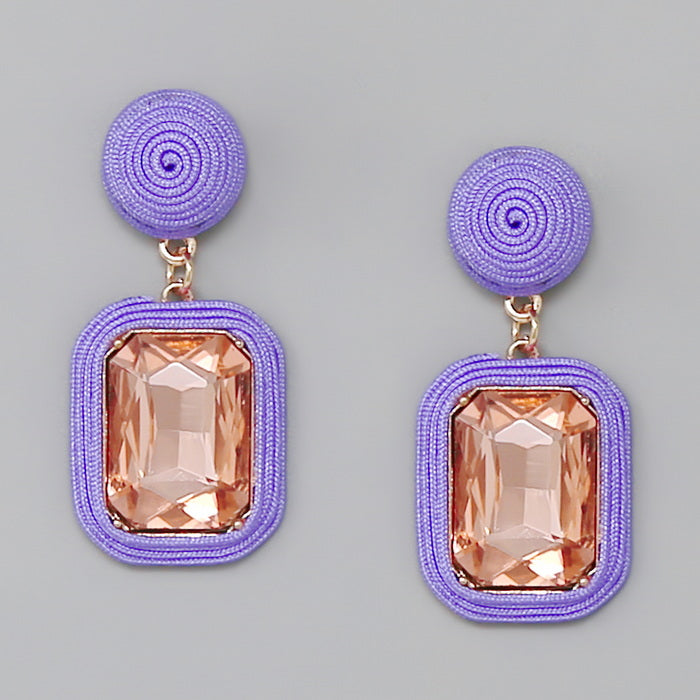 Thread Wrapped Emerald Cut Stone Drop Earrings