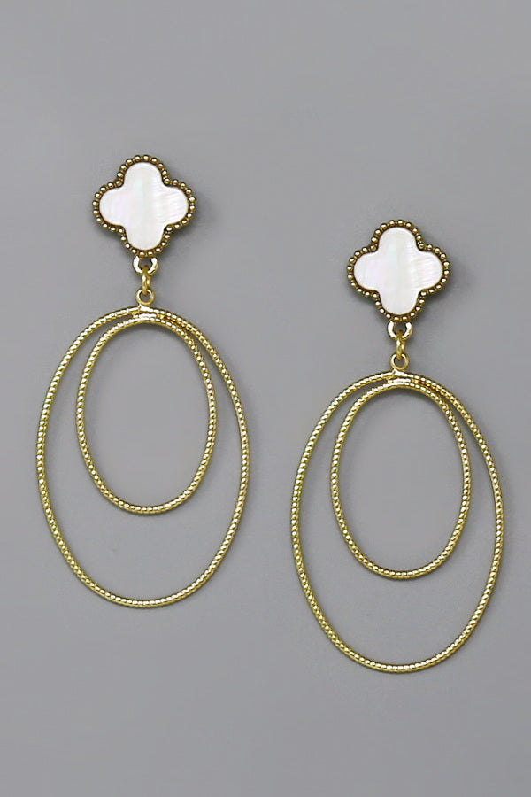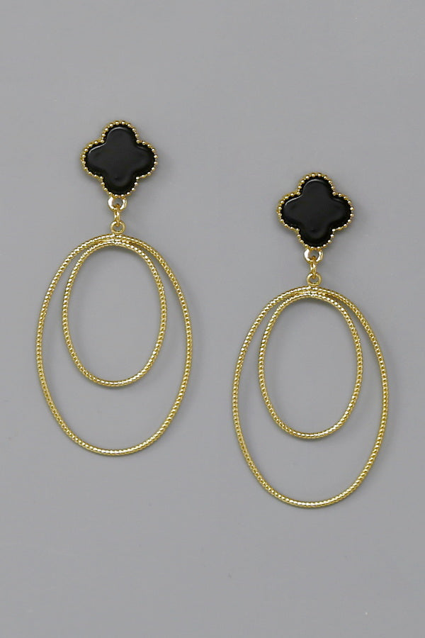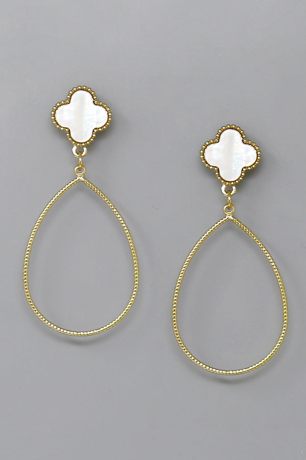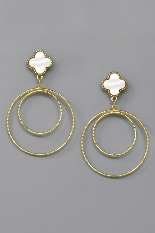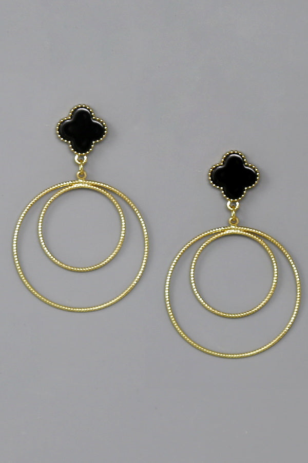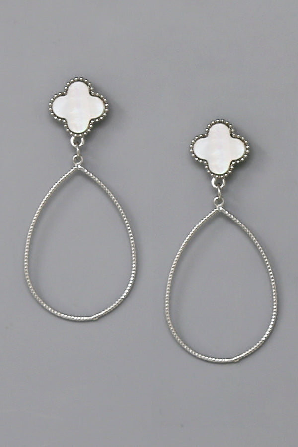 CZ Pave Floral Charm Stainless Steel Hoop Earrings