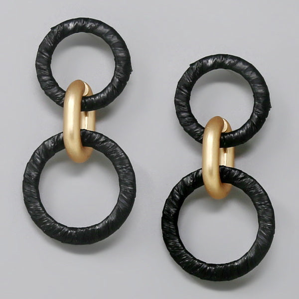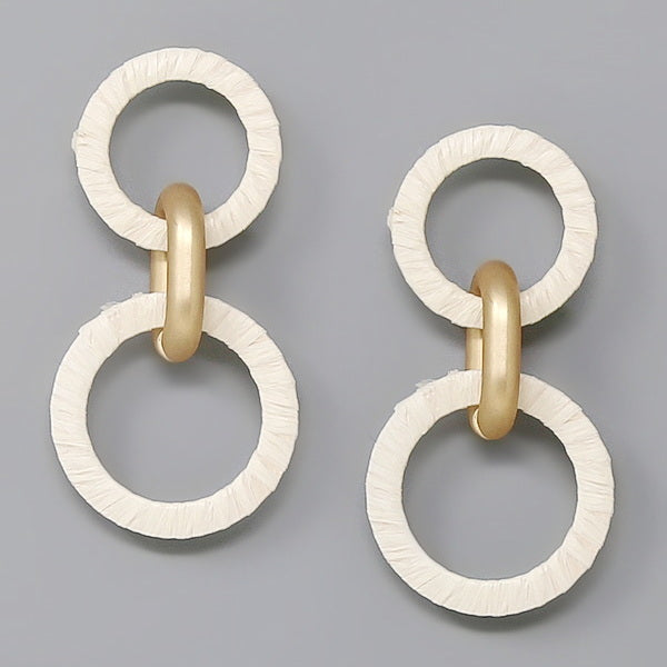 Raffia Wrapped Teardrop Hoop Dangle Earrings