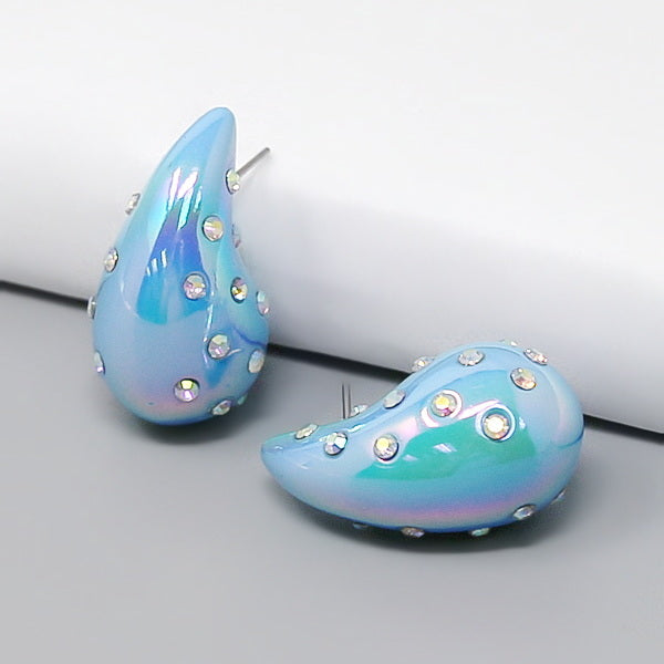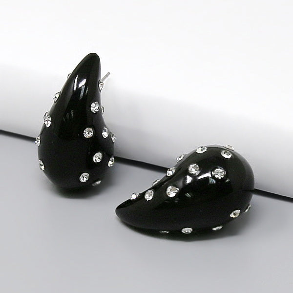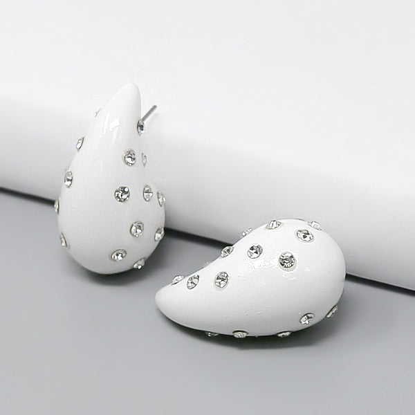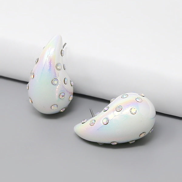 Glass Stone Embellished Pearl Finish Teardrop Earrings