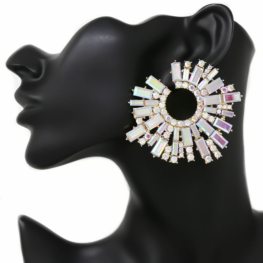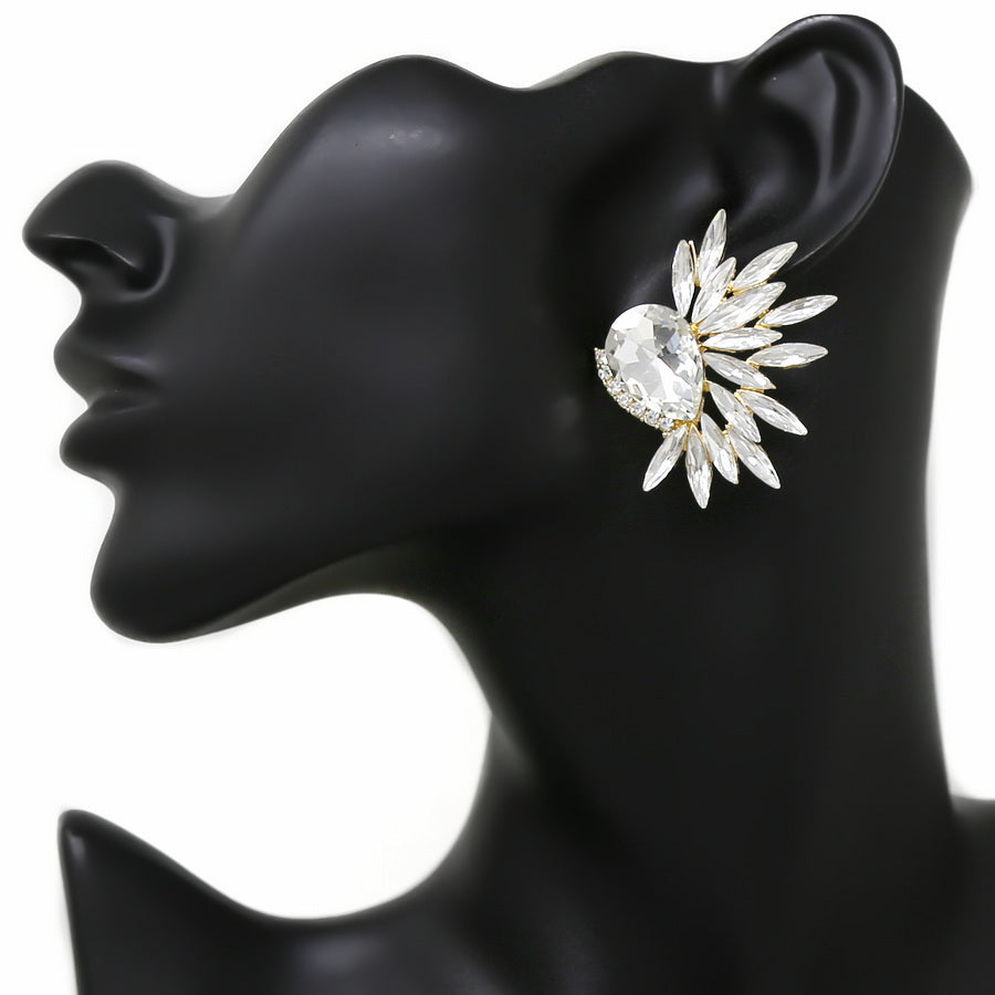 Arched Marquise Glass Stone Embellished Statement Earrings