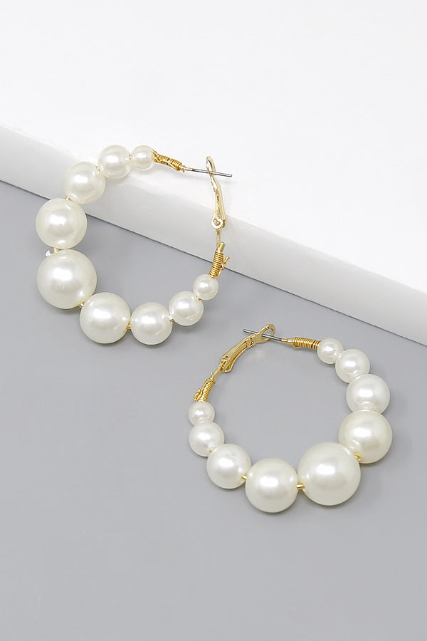 Pearl & Glass Stone Embellished Double Hoop Earrings