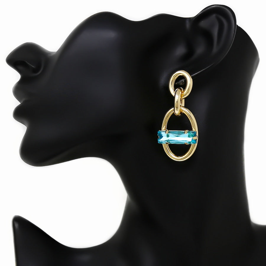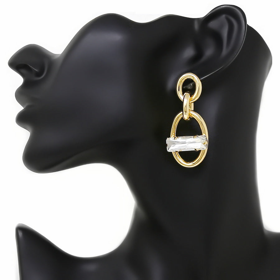 Glass Stone Detail Metal Linked Chain Dangle Earrings