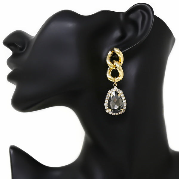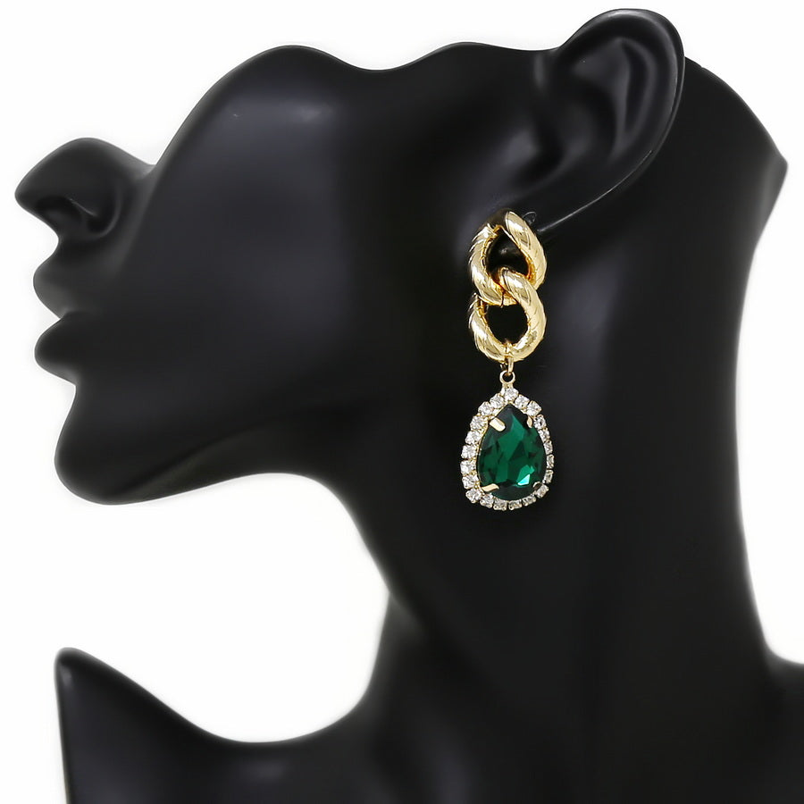 Glass Stone Teardrop Linked Chain Dangle Earrings