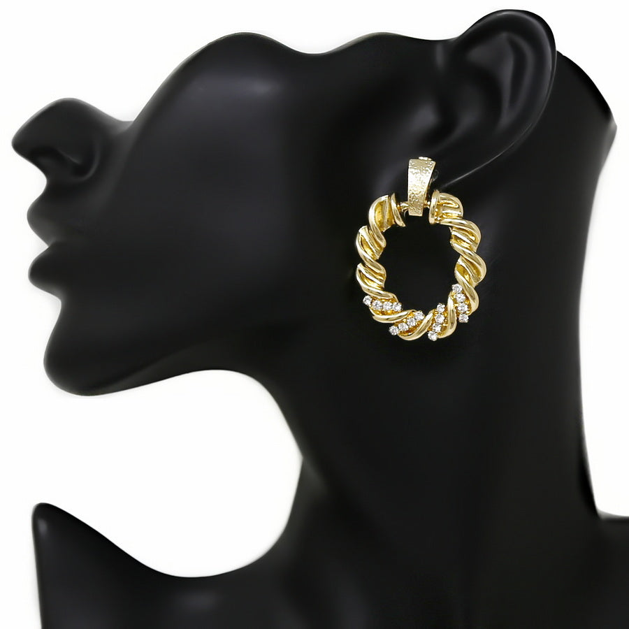 Glass Stone Embellished Twisted Hoop Drop Earrings
