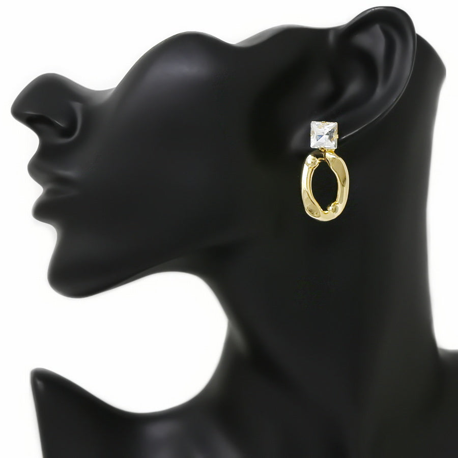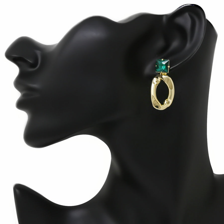 Square Glass Stone Curved Metal Hoop Drop Earrings