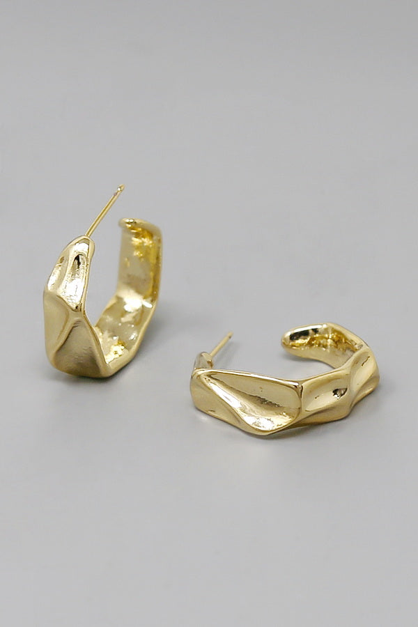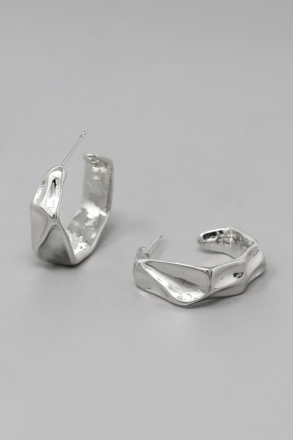 Crumpled Metal Hexagon Hoop Earrings