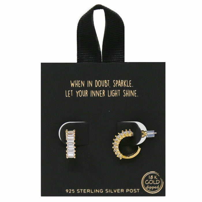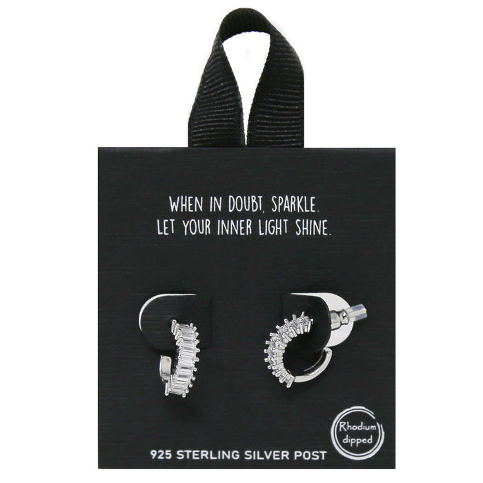 Emerald Cut CZ Stone Pave Hoop Earrings