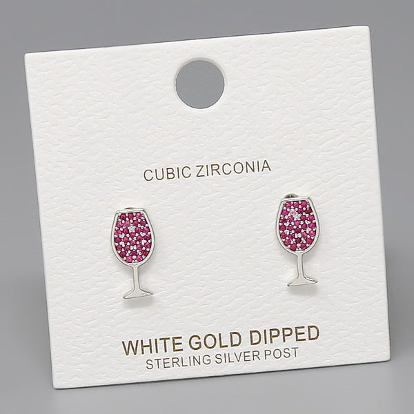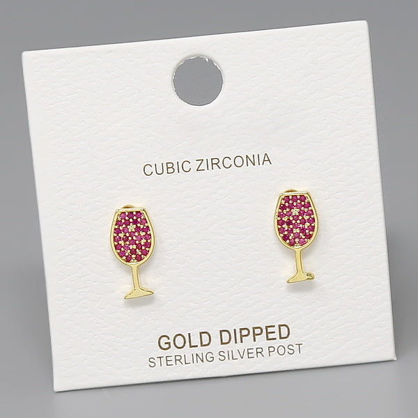 Wine Glass CZ Pave Gold Dipped Stud Earrings