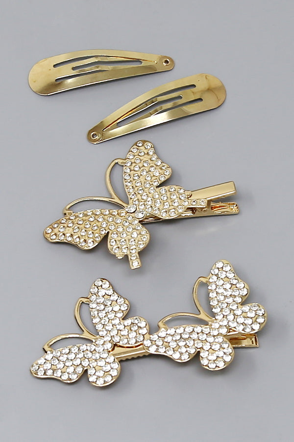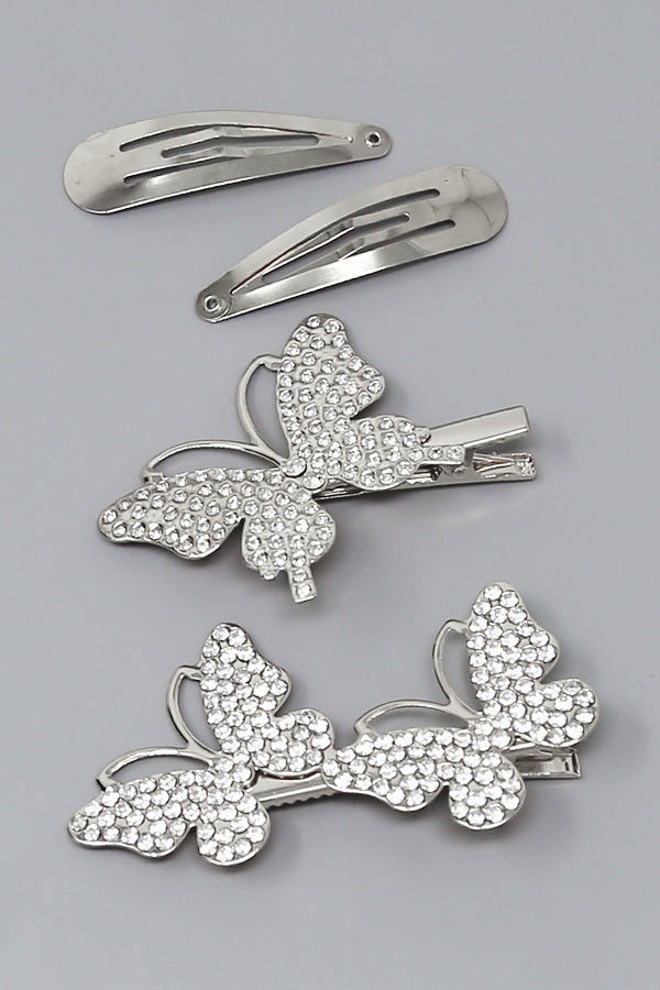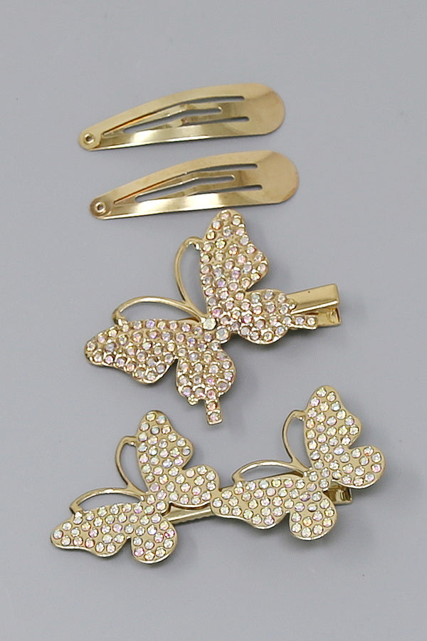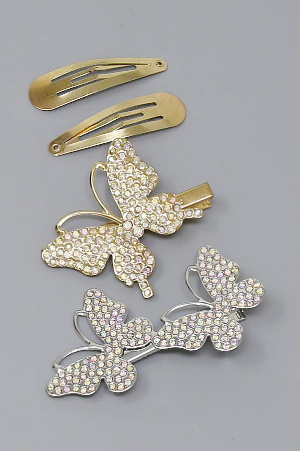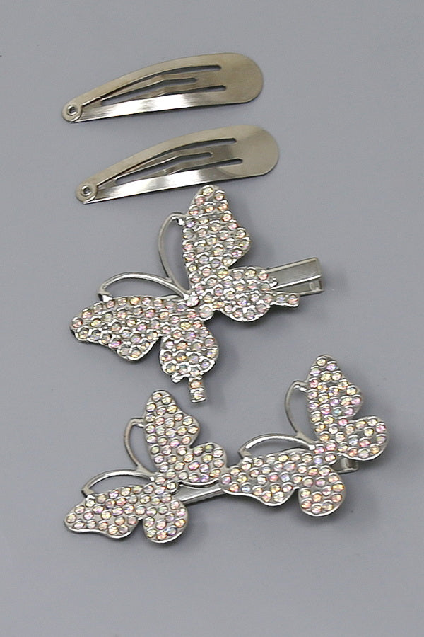 Butterfly Rhinestone Pave Hair Clip Set