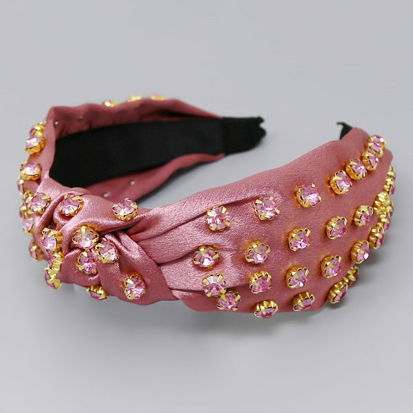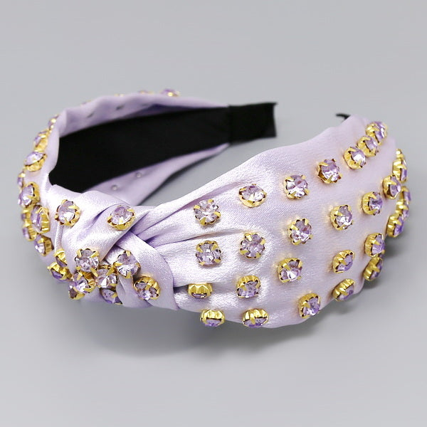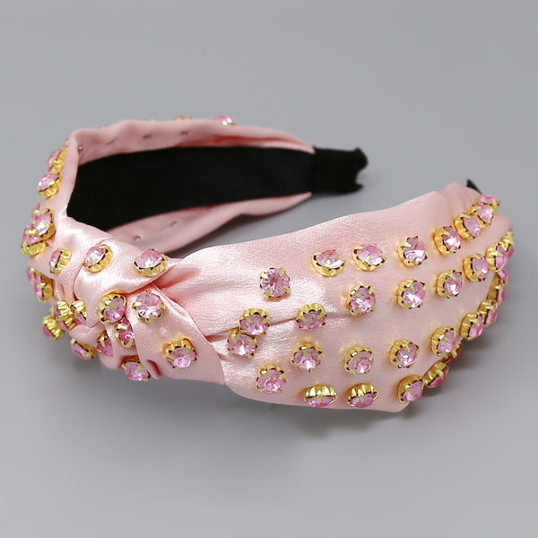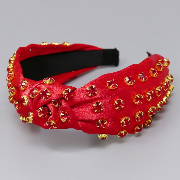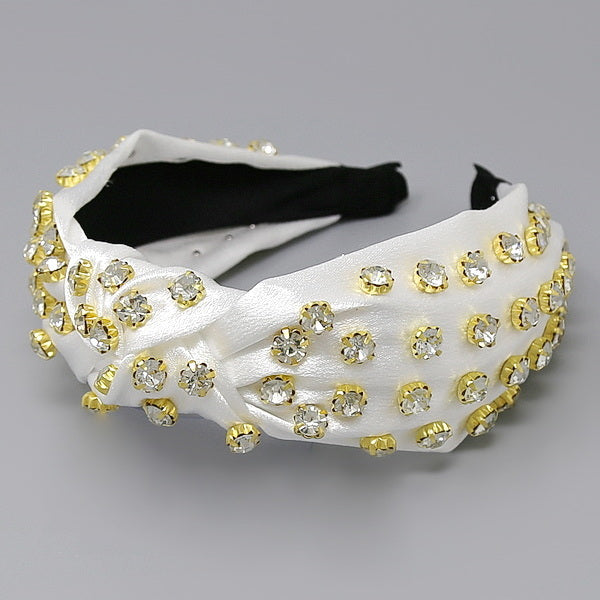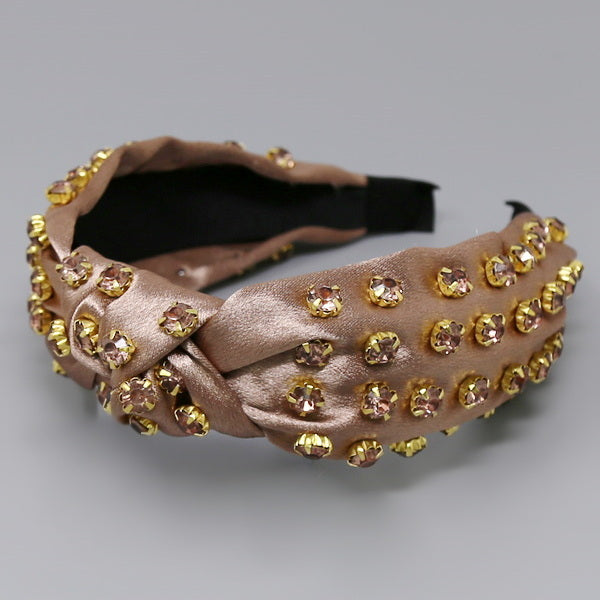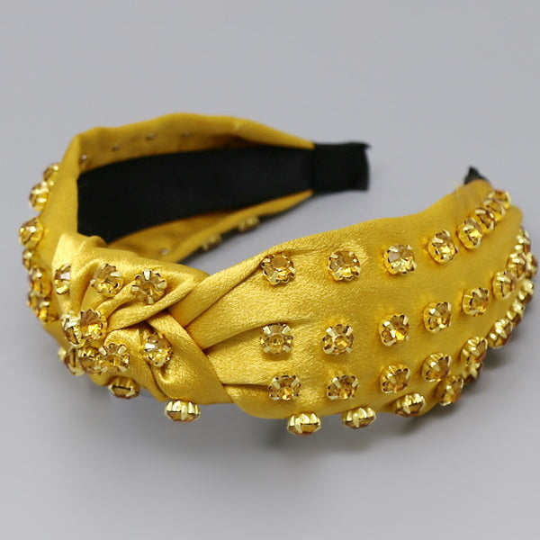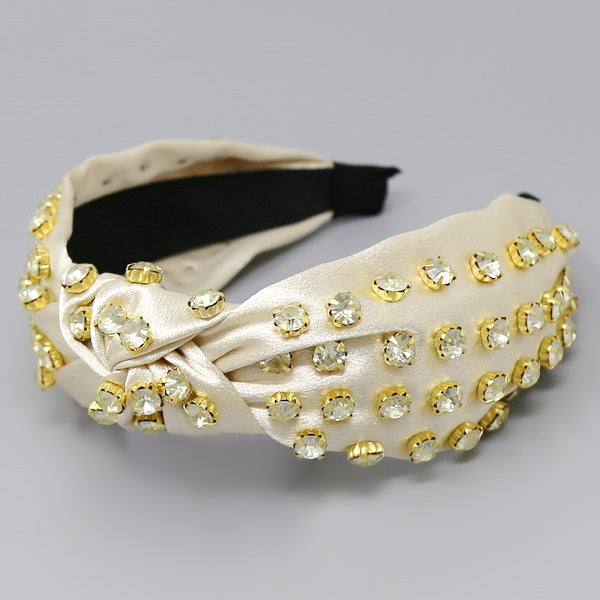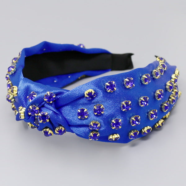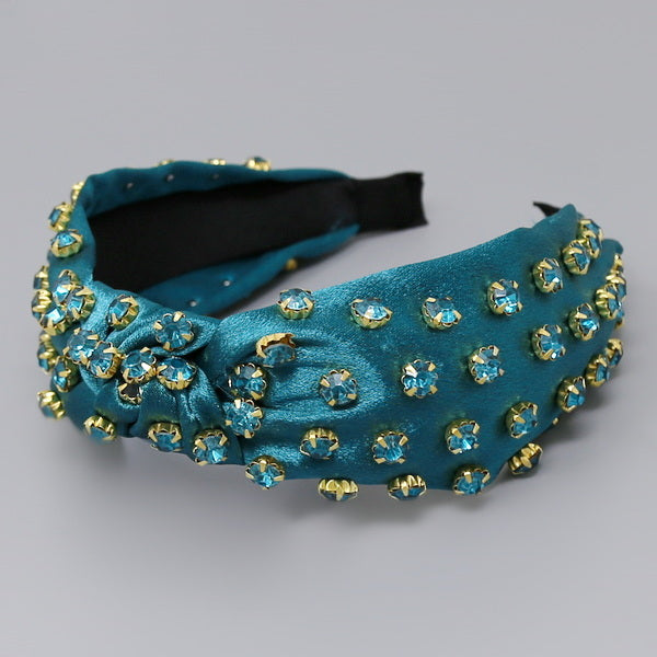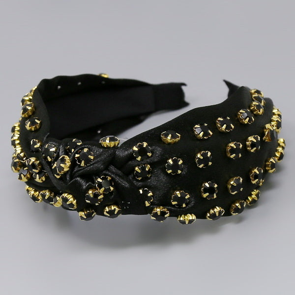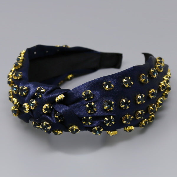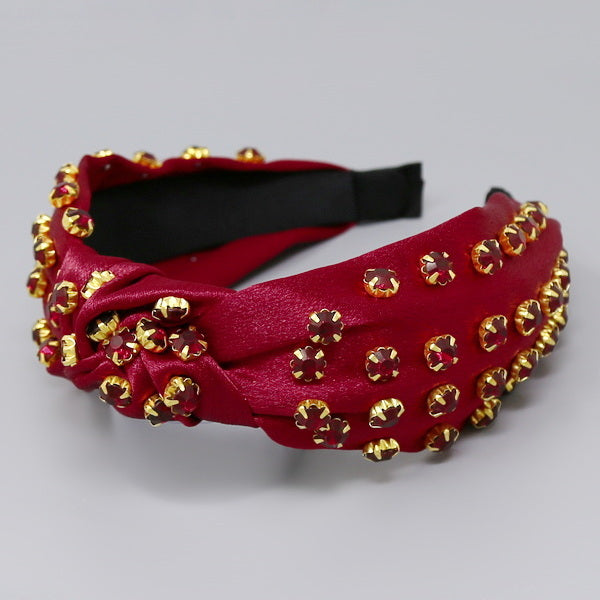 Glass Stone Embellished Front Knot Fabric Headband