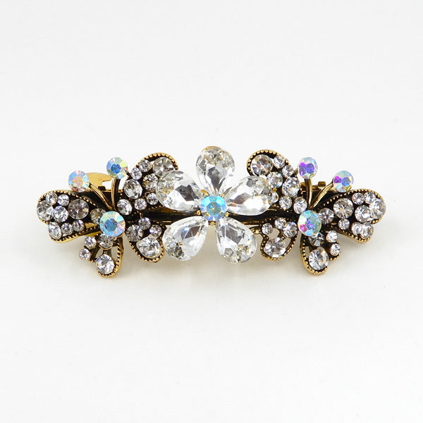 Glass Stone Floral Butterfly Embellished Metal Barrette