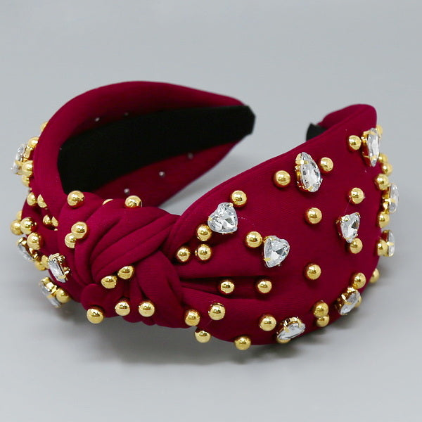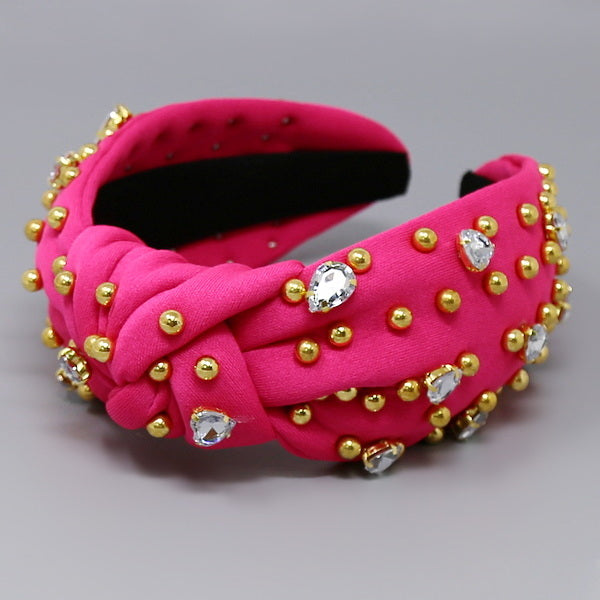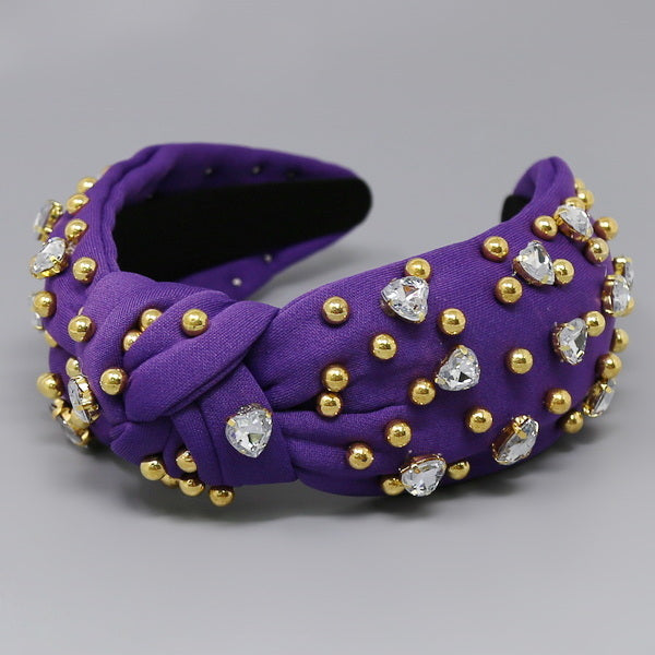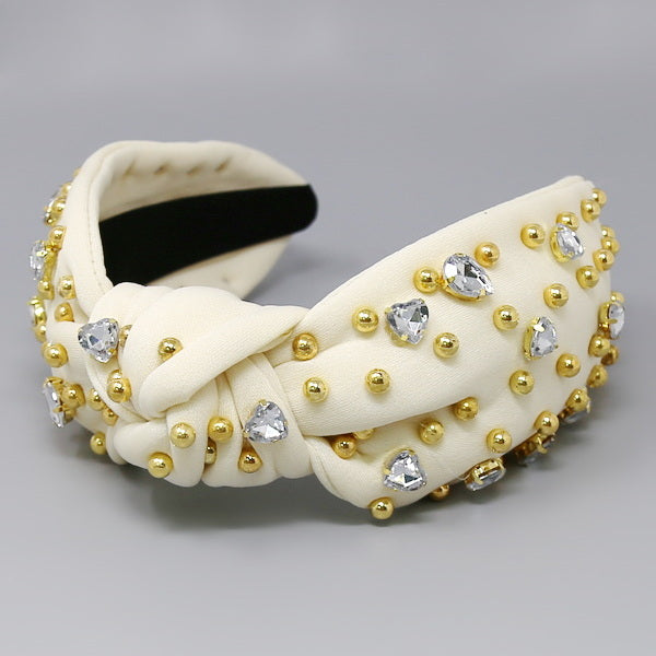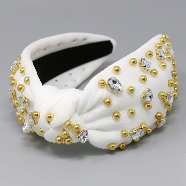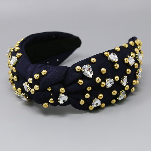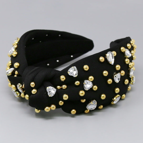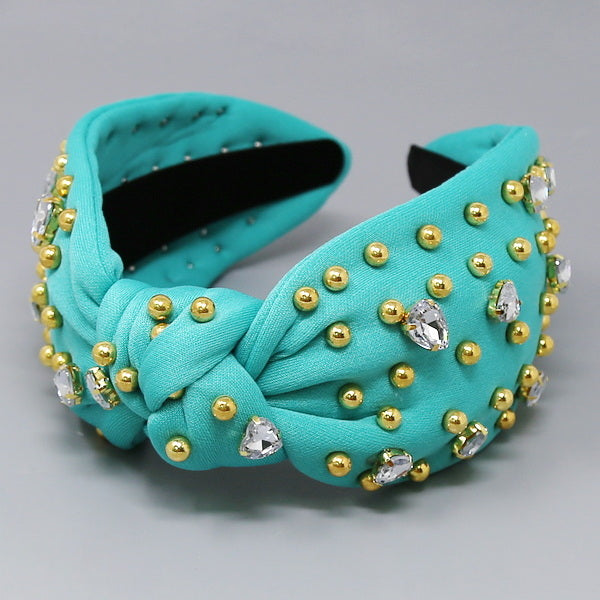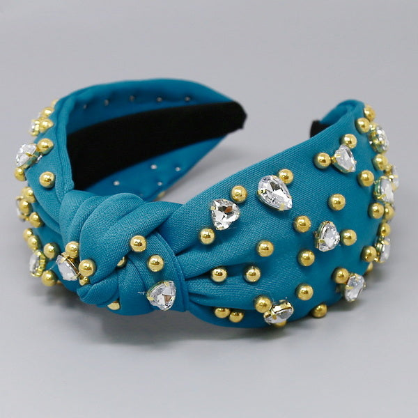Glass Stone & Metal Bead Embellished Fabric Headband