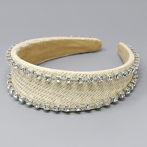 Glass Stone Trimmed Raffia Headband