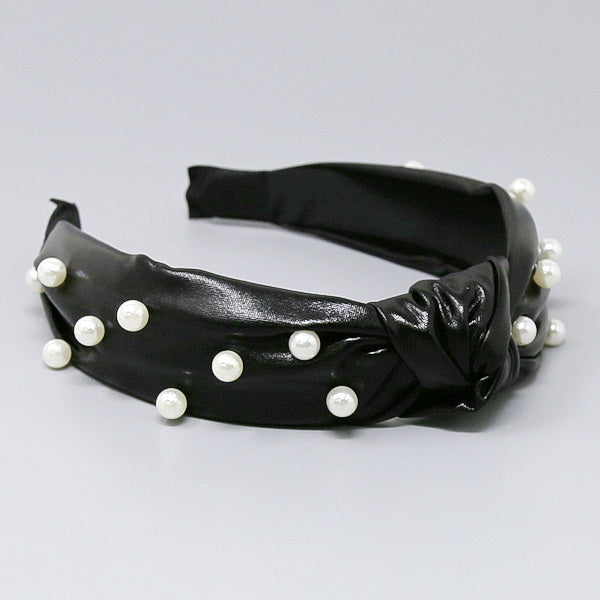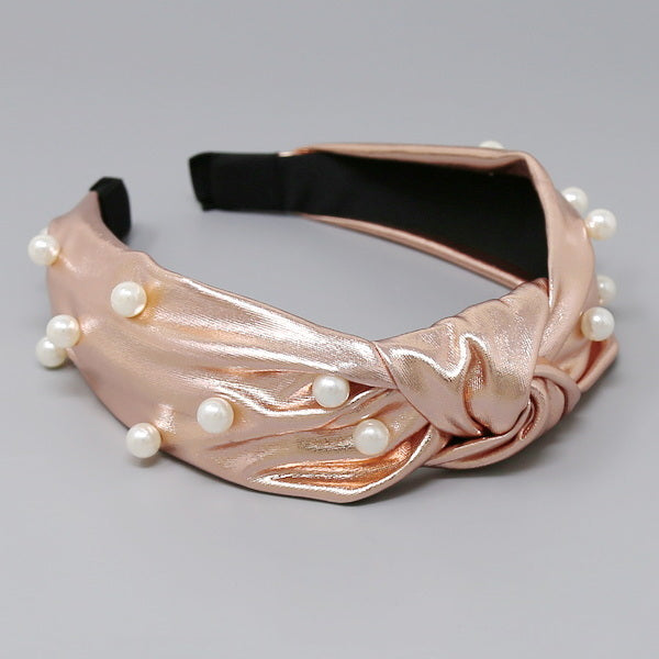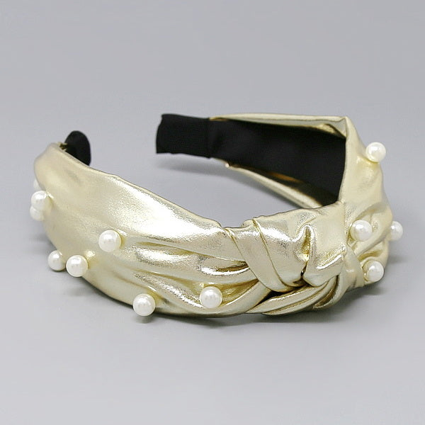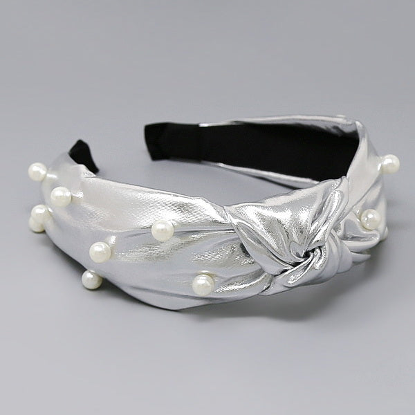 Pearl Embellished Metallic Front Knot Headband
