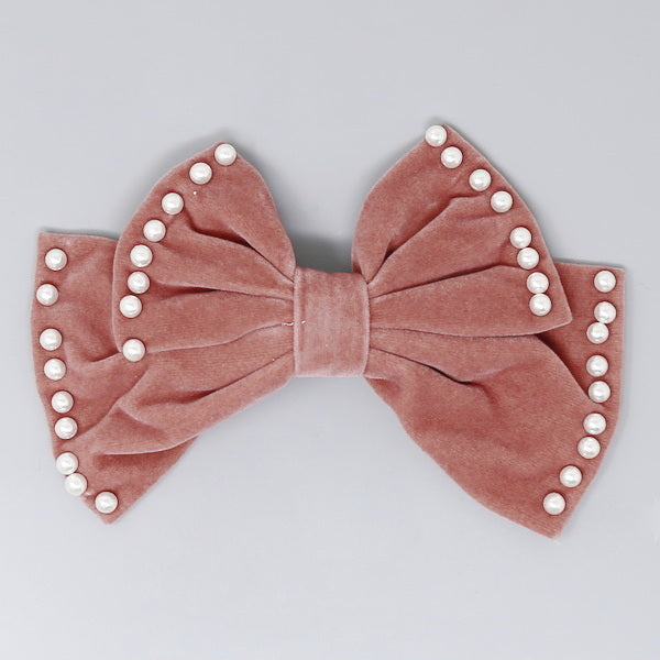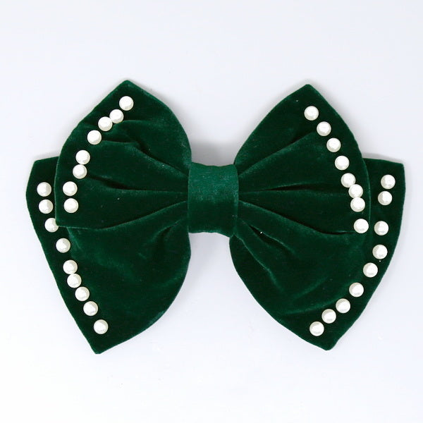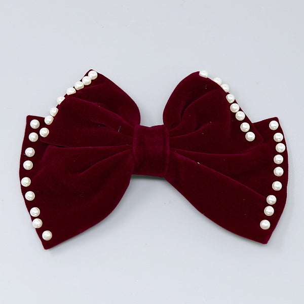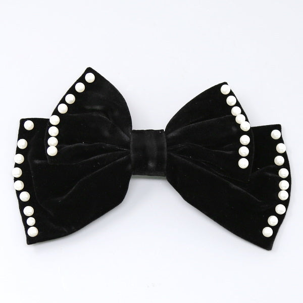 Pearl Trimmed Velvet Bow Hair Barrette