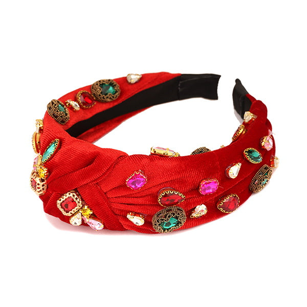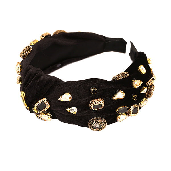 Multi Stone Embellished Front Knot Headband