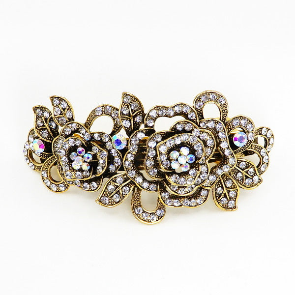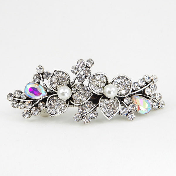 Rhinestone Floral Embellished Metal Barrette