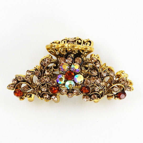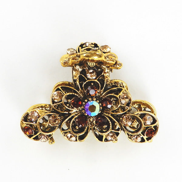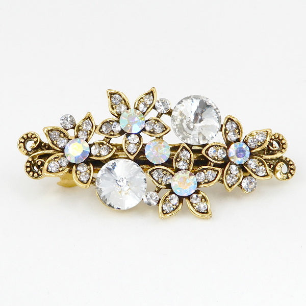 Glass Stone Floral Embellished Metal Barrette