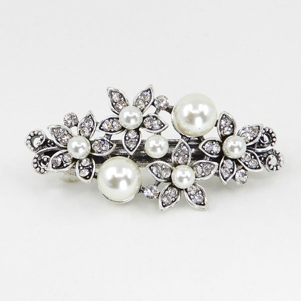 Pearl Floral Embellished Metal Barrette