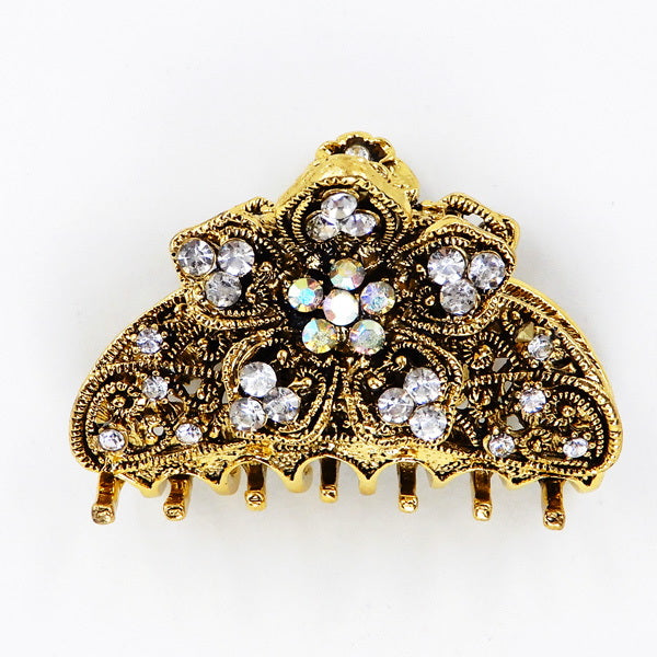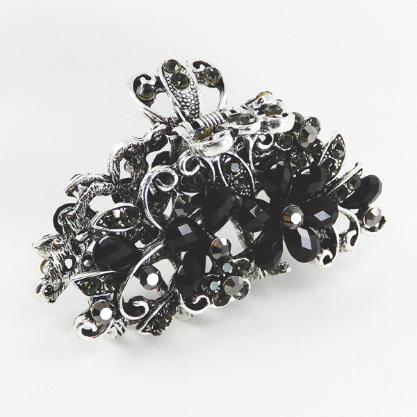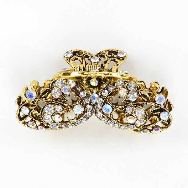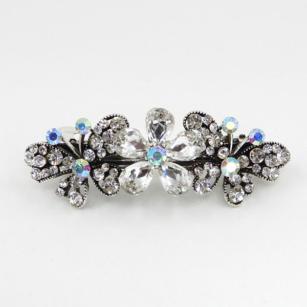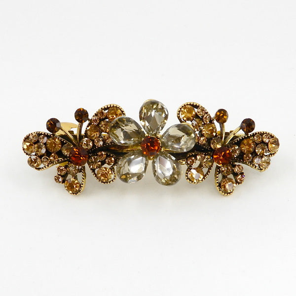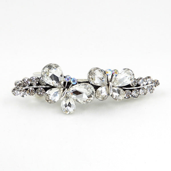Glass Stone Floral Butterfly Embellished Metal Barrette