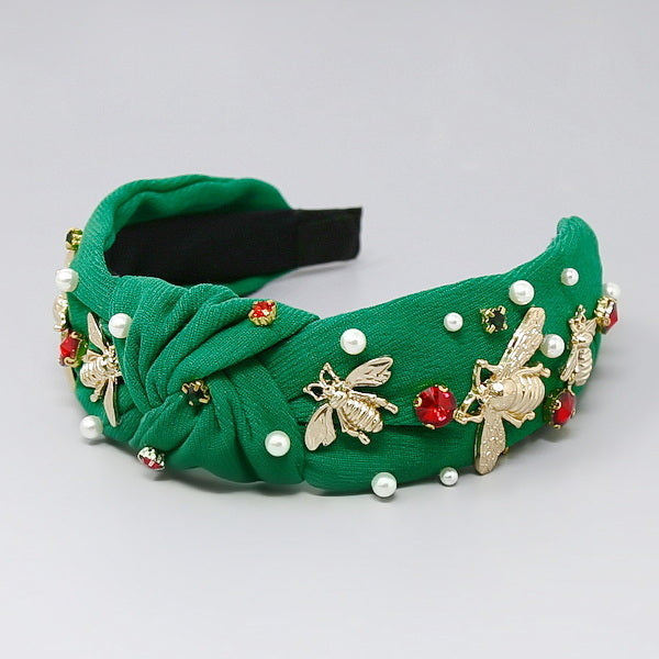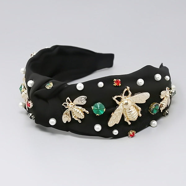 Bee Pearl Stone Embellished Knot Headband