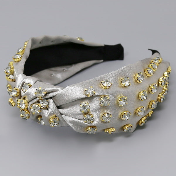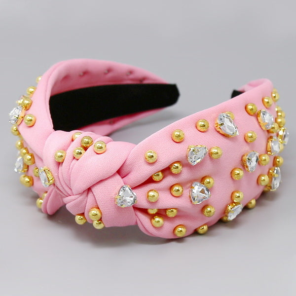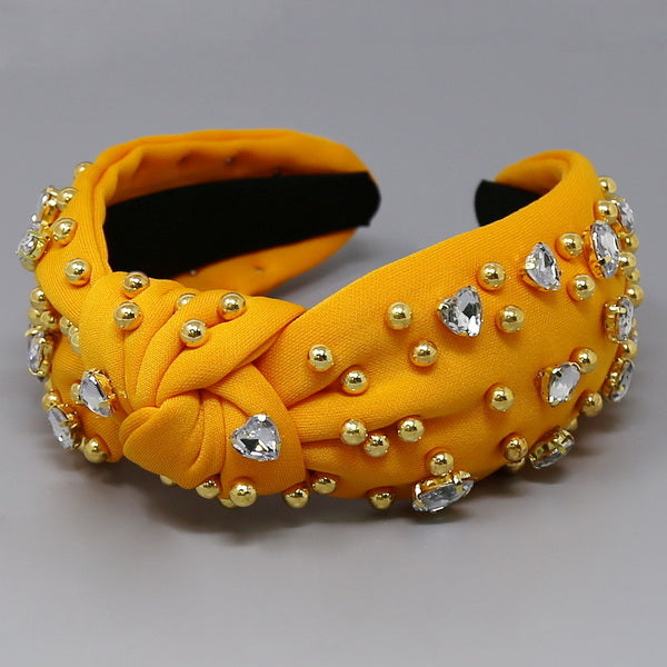 Glass Stone & Metal Bead Embellished Fabric Headband