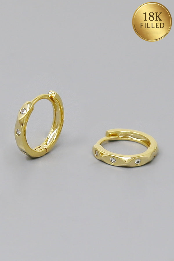 18K Gold Filled CZ Embellished Textured Mini Hoop Earrings