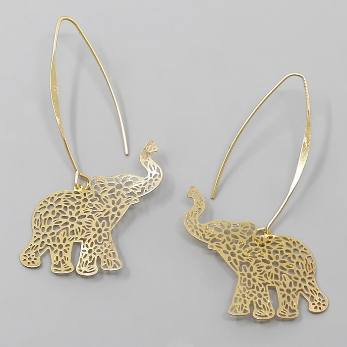 Elephant Cutout Filigree Long Hook Earrings