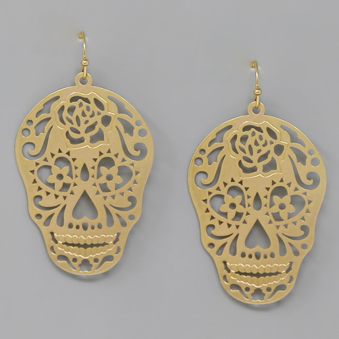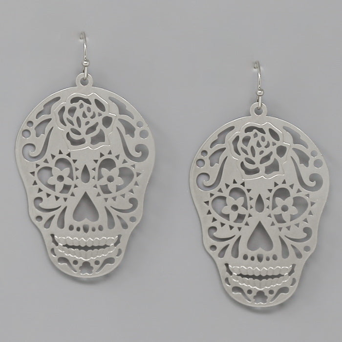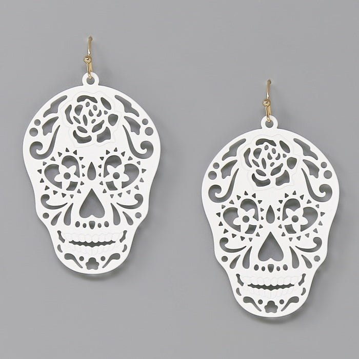 Sugar Skull Filigree Drop Earrings