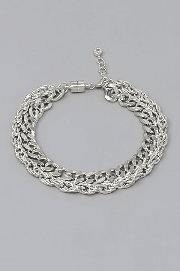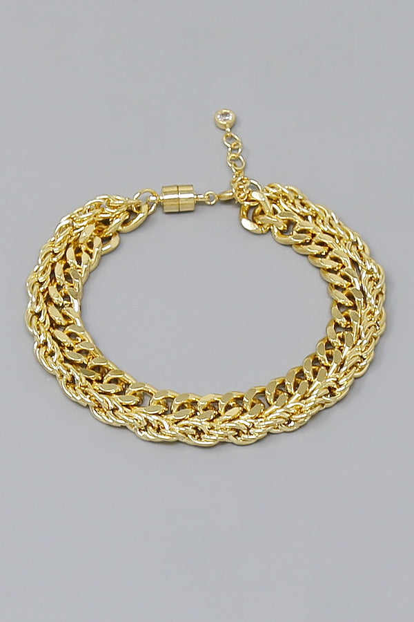 Curb And Rope Chain Gold Dipped Magnetic Bracelet