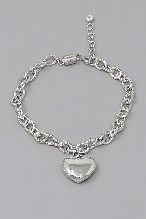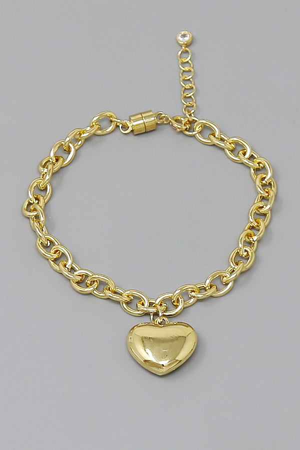 Puffed Heart Charm Gold Dipped Magnetic Bracelet