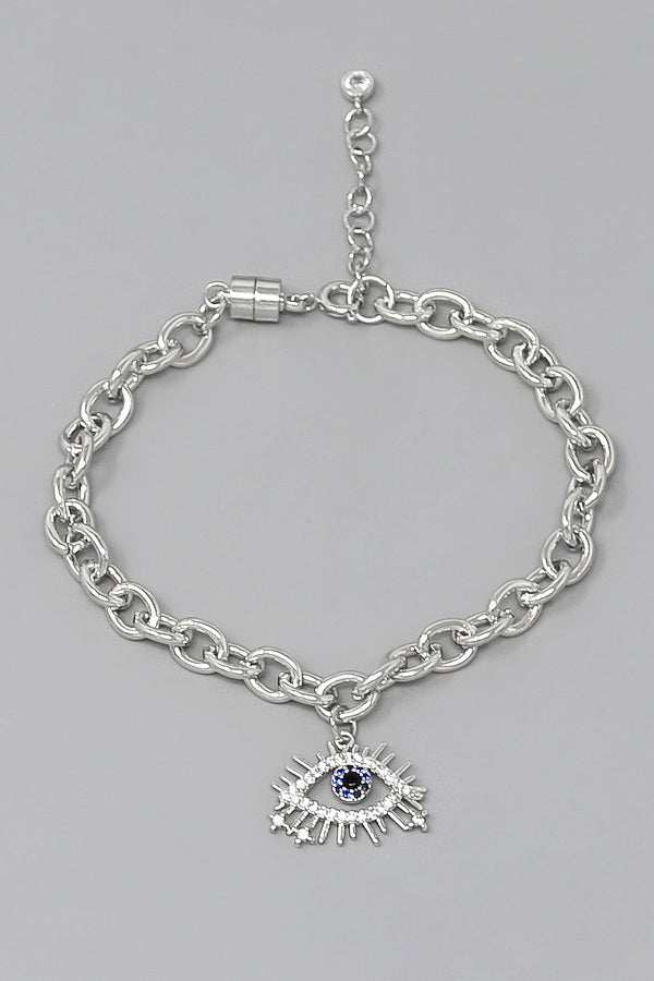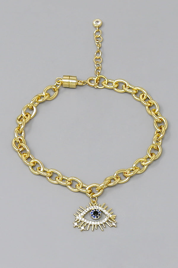 Pave Evil Eye Charm Gold Dipped Magnetic Bracelet