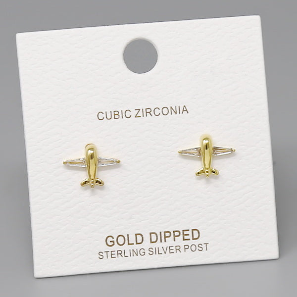 Airplane CZ Pave Stud Earrings