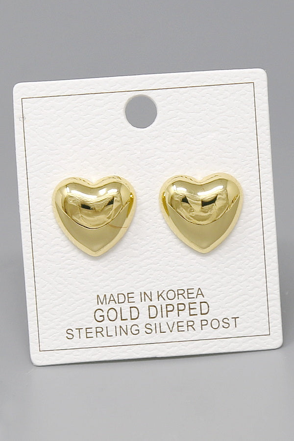 Puffed Heart Gold Dipped Stud Earrings