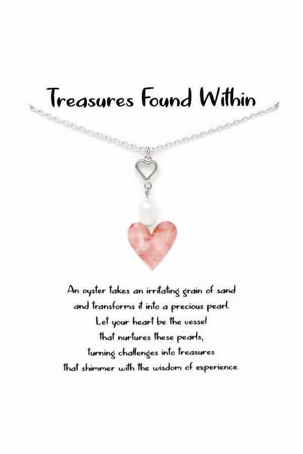 Tell Your Story: Treasures Found Within Heart Pearl Pendant Short Necklace