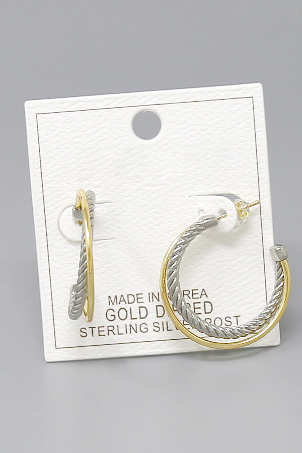 Two Tone Crisscross Textured Gold Dipped Earrings