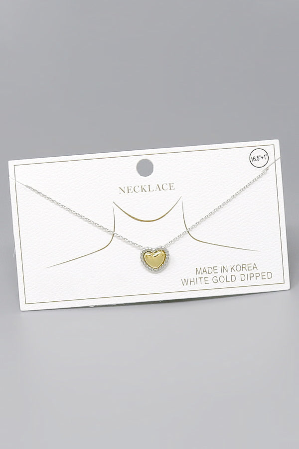 Two Tone Heart Pendant Gold Dipped Necklace