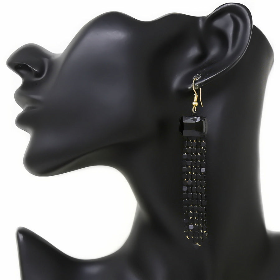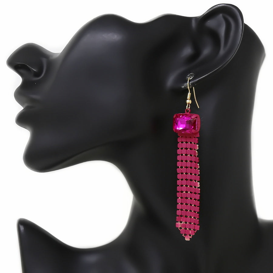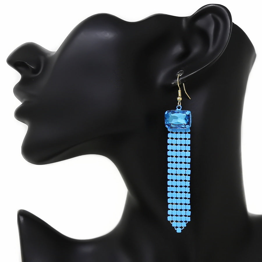 Rectangle Glass Stone Metal Mesh Dangle Earrings